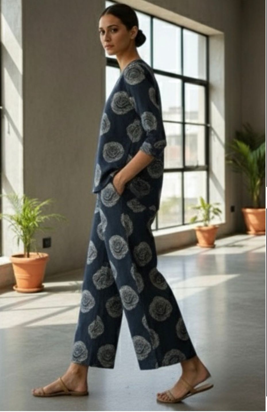 JAIPUR Beige Printed Khadi Cotton Kurta Set